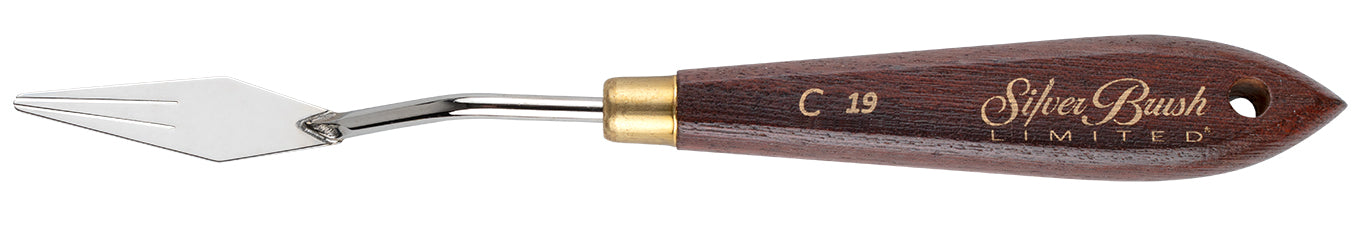 The Silver Brush Ltd palette knife #C 19 is the ultimate tool for texture and patterns. Its flexible, carbon steel blade is perfect for impasto, mixing, and creating dynamic strokes. The ergonomic handle ensures comfort and precision. A versatile essential for any painter's studio.