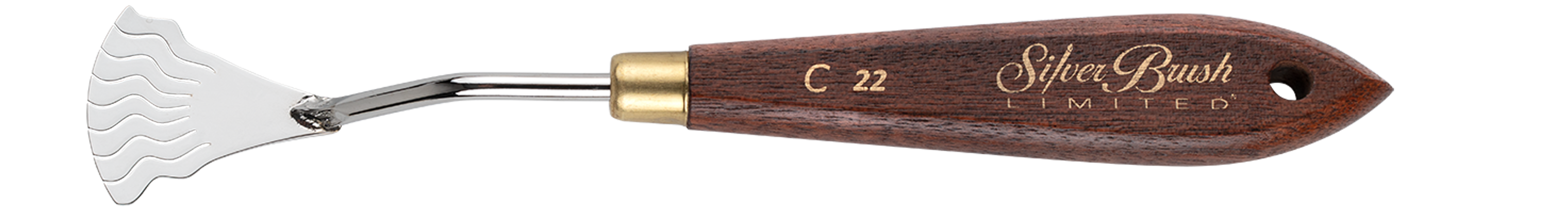 Crafted with high-quality carbon steel, the Silver Brush Ltd Creative palette knife # C 22 is a versatile tool for artists working with oil, acrylic, impasto, gesso and all paints. The flexible, uniquely shaped blade is designed to create a variety of unique patterns and intricate details. Great for fabric, wallpaper and textile patterns on any surface. The ergonomic handle provides a comfortable and secure grip, allowing for precise control and a seamless painting experience. A must-have for both professional and aspiring artists, this knife is a durable and reliable addition to any creative toolkit.