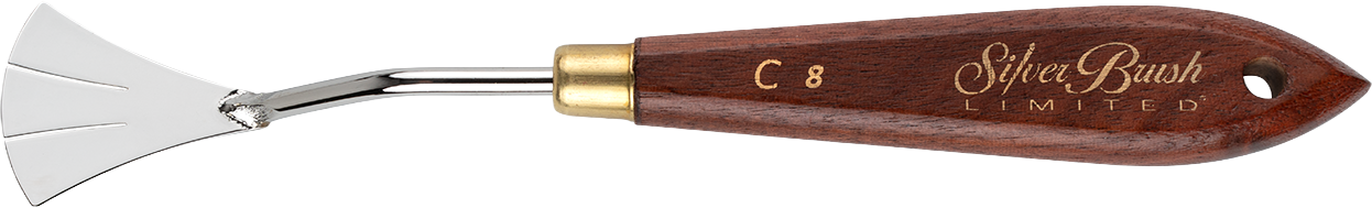 The Silver Brush Ltd palette knife #08 is the ultimate tool for texture and control. Its flexible, triangular carbon steel blade is perfect for impasto, mixing, and creating dynamic strokes. The ergonomic handle ensures comfort and precision. A versatile essential for any painter's studio.
